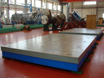 2、工作面帶有T型槽、孔、水槽的焊接平臺焊接平板應用領域最為廣泛,大型機械設備、造船、冶金、礦山、電子(雷達天線)等行業的焊接組裝裝配工作都以此種焊接平板作為焊接基準工作臺使用,造船行業專用的火工平臺就是帶孔的焊接平臺,礦山機械焊接裝配用的帶T型槽的焊接平臺也稱為T型槽平臺、T型槽焊接平臺、T型槽鑄鐵平臺、裝配平臺等,T型槽用來固定設備,最大焊接平臺規格可達到4000×10000mm,單件重量100噸,一般都是多件拼接,拼接焊接平臺的使用面積可以達到幾百甚至幾千平方米。