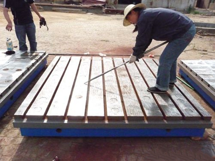 劃線平板/劃線平臺材質多為高強度鑄鐵HT200-300,工作面硬度為HB170-240,經過兩次人工處理(人工退火600度-700度和震動時效)使該產品的精度穩定,耐磨性能好。